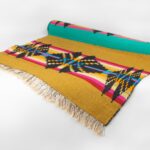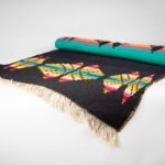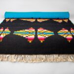 Parduotuvė—Handwoven Wool Textile Art Rug for Living room. Textile Wall Decor. Floor Runner Decor. Modern Boho Scandinavian Multicoloured Black Design.
