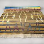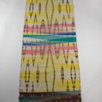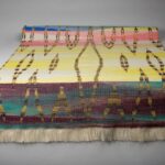 Large Abstract Art Handwoven Ikat Textile Wool Linen Floor Runner, Placemat Home Decor. Natural Yellow Rainbow colours design Primitive rug.